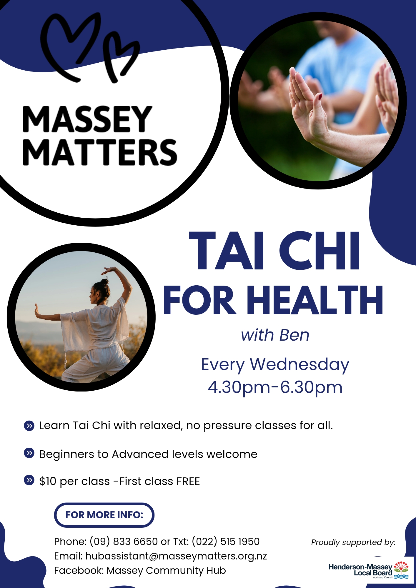 Join Massey Matters for a relaxing and pressure-free Tai Chi for Health class with instructor Ben at the Massey Community Hub!